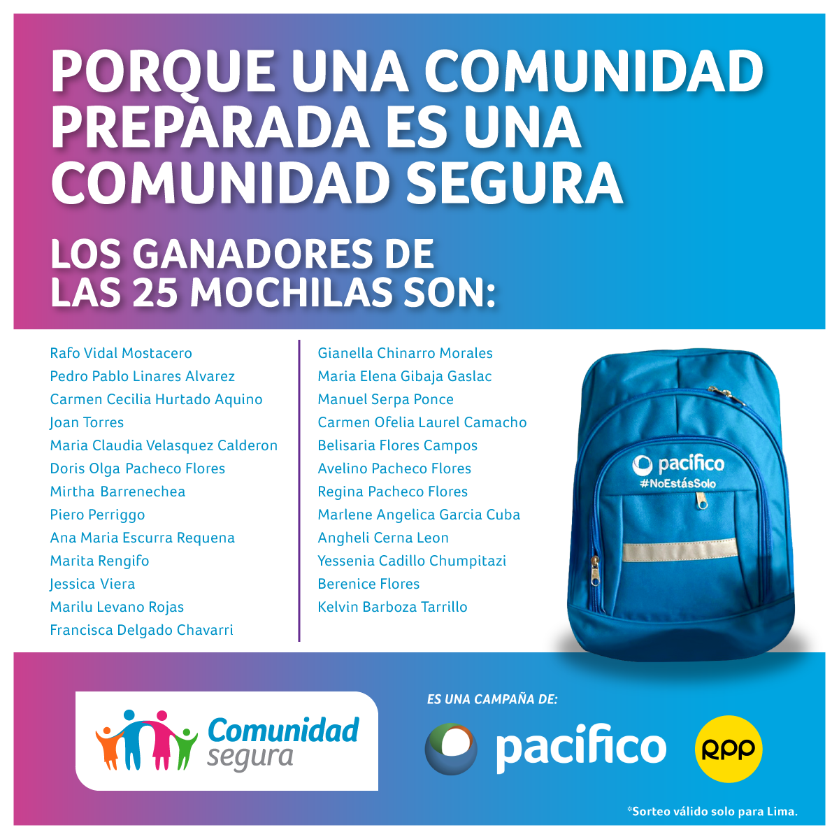SORTEO CAMPAÑA COMUNIDAD SEGURA “MOCHILA DE EMERGENCIA PACÍFICO”